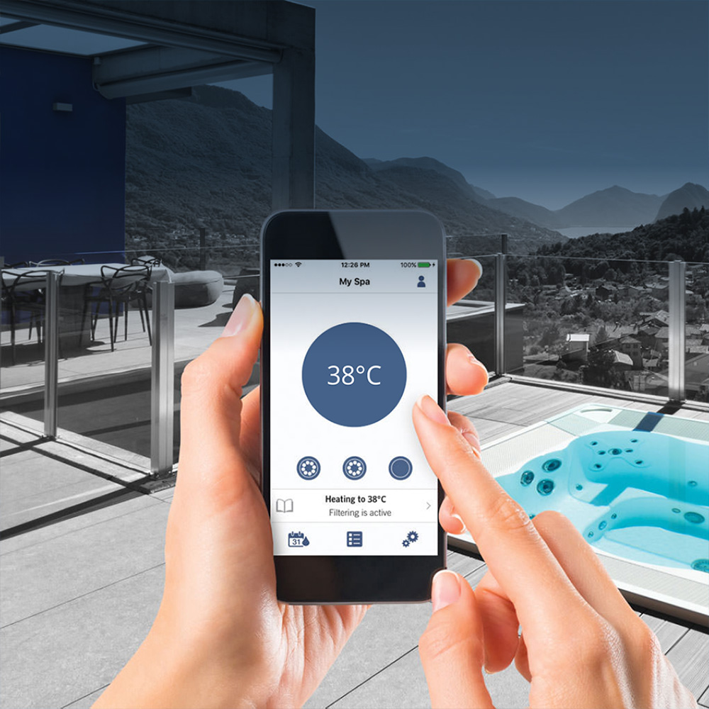 Każde jacuzzi podgrzewane Svenska wyposażone jest w nowoczesny system sterowania Gecko in.ye-5 oraz wyświetlacze K500 i K800. Osprzęt ten pozwala na zaawansowaną kontrolę temperatury i innych kluczowych funkcji jacuzzi. Odległość nie gra roli. Jako właściciel jacuzzi SVENSKA możesz sterować nim nawet z drugiego końca świata.