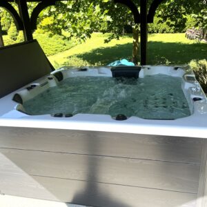 Oświetlenie LED, rozdzielacz stref wody, zawór napowietrzający, podświetlona fontanna [2 szt.], schodki, wkład filtracyjny [2 szt.], zagłówek [4 szt.], grzejnik przepływowy Gecko Heat.wav [3600W]